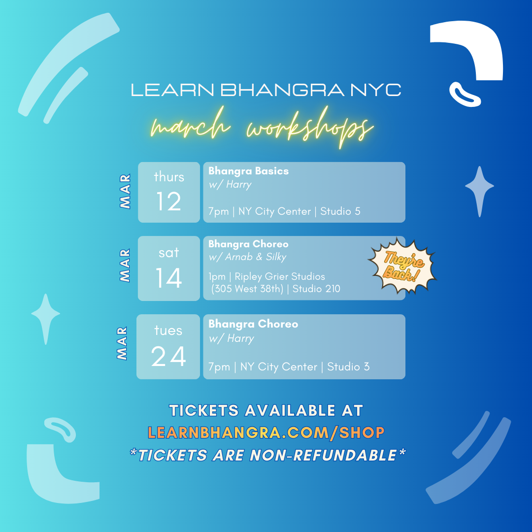 Price range: $20.00 through $159.00Our New York City team has some exciting classes coming up! We offer three types of class: Bhangra Basics – We cover steps and the foundations […]